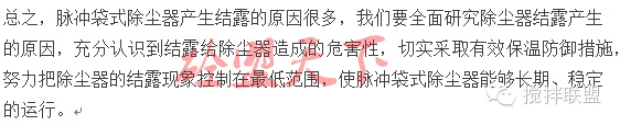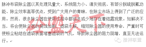 三、脈沖袋式除塵器結露現象的解決辦法