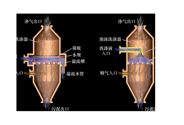 在逆流式噴霧塔中,含塵氣體向上運(yùn)動(dòng),液滴由噴嘴噴出向下運(yùn)動(dòng)。因液滴和顆粒之間的慣性碰撞、攔截和凝聚等作用,使較大的的粒子被液滴捕集。噴霧塔具有結(jié)構(gòu)簡(jiǎn)單、壓力損失小、操作穩(wěn)定等特點(diǎn),經(jīng)常與高效洗滌器聯(lián)用捕集粒徑較大的顆粒。